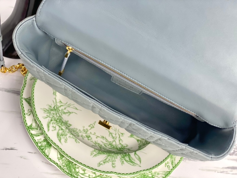 翻盖开合搭配旋钮式 CD 扣环 背面 30 Montaigne 压花标志 可拆卸、可调节的 CD 链环肩带,搭配军装风格的 Christian Dior 搭扣 2 个可拆卸链环搭配 X 形中间凹口设计,便于打开链条 内部拉链口袋和贴袋 后侧口袋 可随心搭配其他刺绣肩带