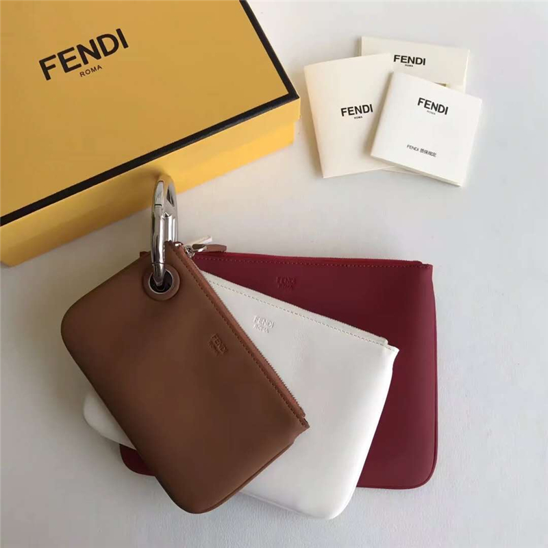001 FENDI芬迪 F IS FEND 三套索环 小牛皮 手拿包 啡白红