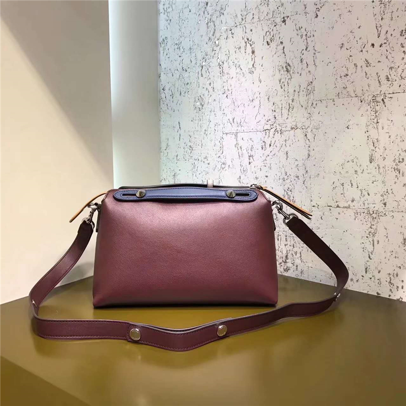 149S FENDI 芬迪 2017新款 柔软小牛皮 拼色波士顿手提包挎包 枣红拼白