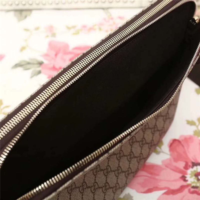 男士福利!Gucci 经典双G花纹 双层双拉链 单肩斜挎包采用标志性 GG Supreme高级人造革精制而成,纹路清晰,一流手工制作,走线均匀,双层双拉链玉米齿,选用进口优质五金,高密度电镀,极难褪色,使您送礼体面过人。