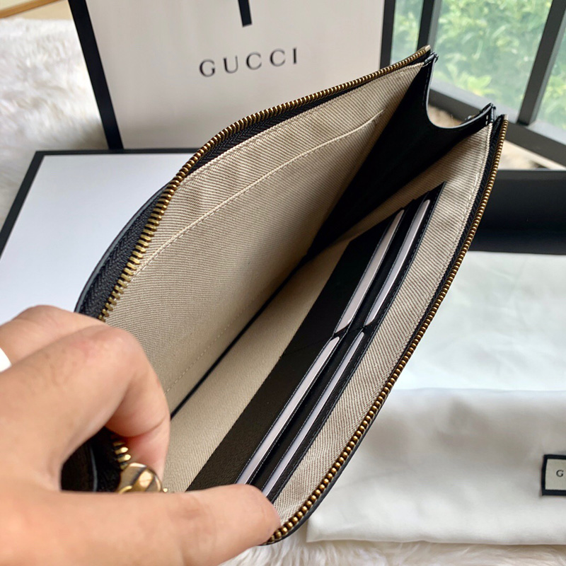 475317 Gucci GG Marmont系列皮革手拿包 GG金属配件手包 黑色