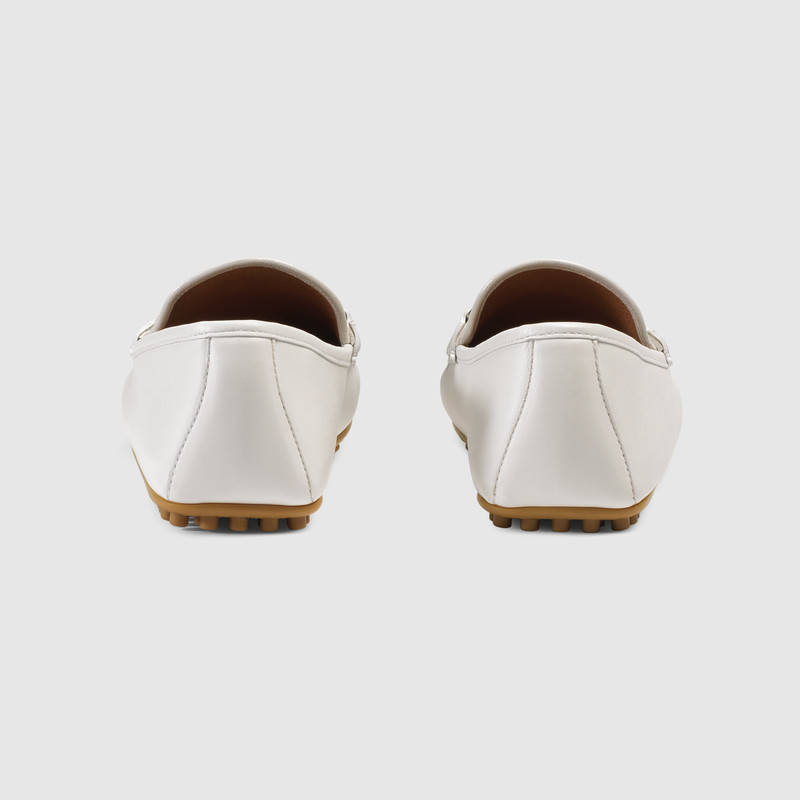 450892 GUCCI 织带装饰 马衔扣 皮革驾车鞋 白色