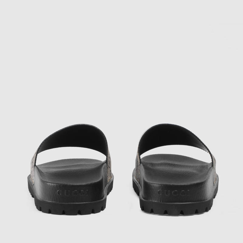 474282 GUCCI 气场猫印花 GG Supreme高级人造帆布 拖鞋 乌木色