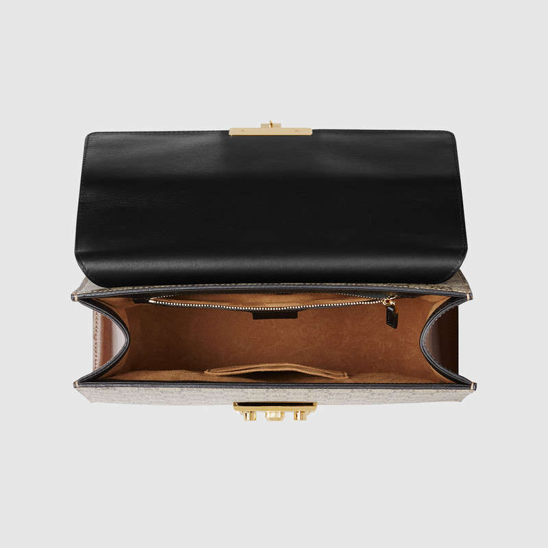 409486 Padlock 系列 GG Supreme高级人造帆布 中号 肩背包 黑配棕