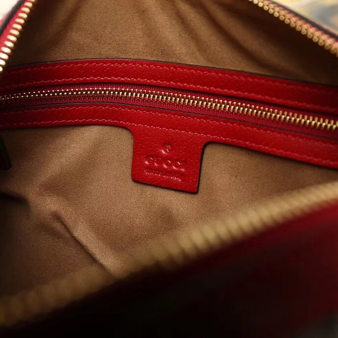 409529 GUCCI GG花鸟印花 帆布拼皮 波士顿手提包 红色