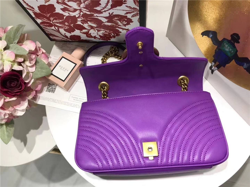 443497 GUCCI GG Marmont系列 绗缝 小号 链条肩背包 紫色