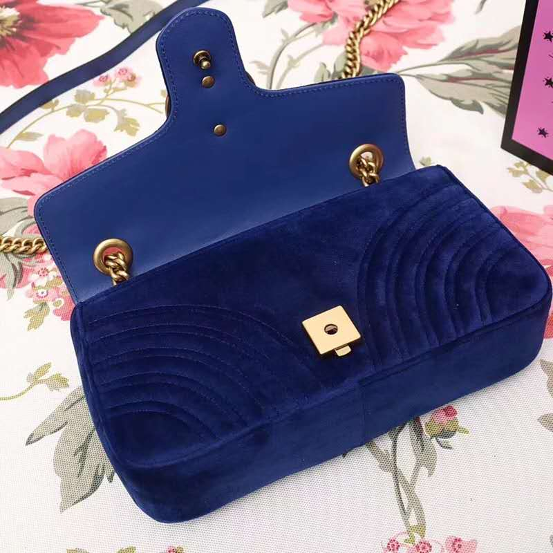 443947 Gucci女包 GG Marmont系列 天鹅绒 小号 古驰链条包 Gucci斜挎包 宝蓝色