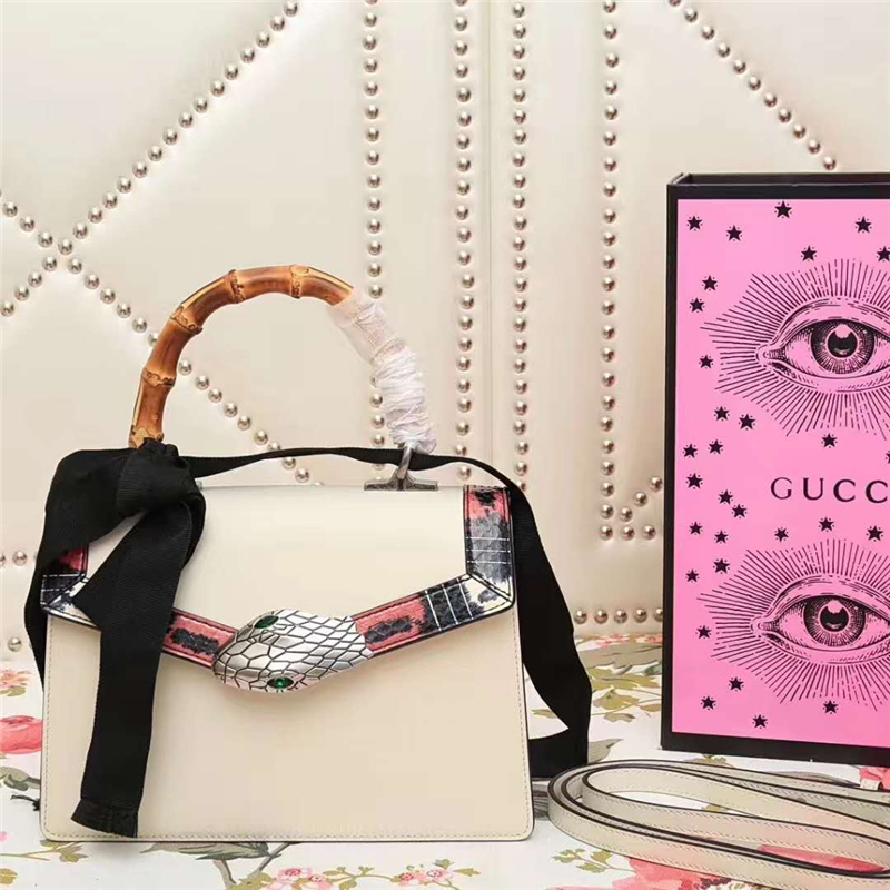453751 Lilith 2017款 绿宝石蛇头 竹节提手 蝴蝶结 单肩斜跨包 白色