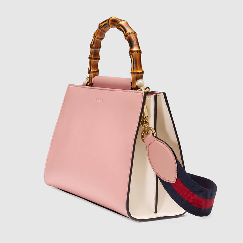 459076 Gucci Nymphaea 系列 皮革 织带肩带 竹节提手 手提包 浅粉色
