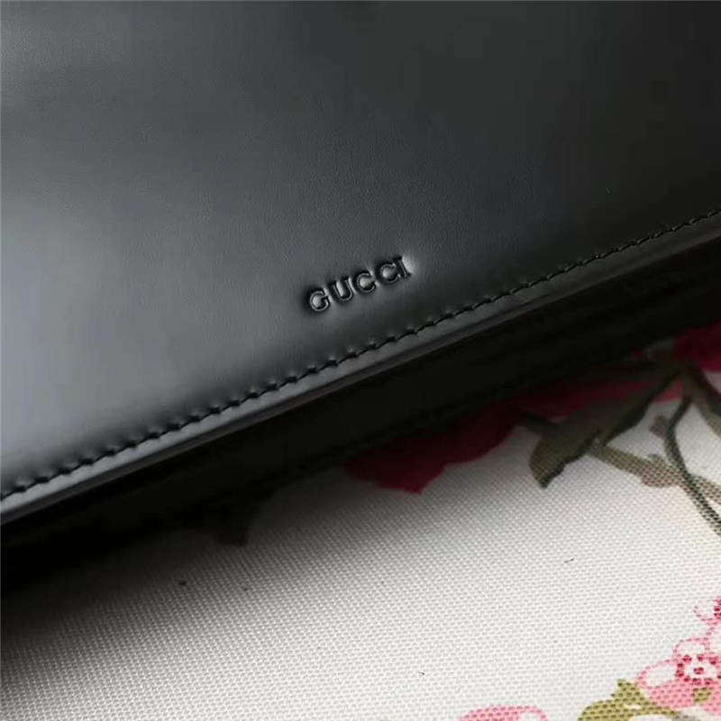 466404 GUCCI 新款 龙头印花 丝缎提手肩带 手提单肩包 黑色