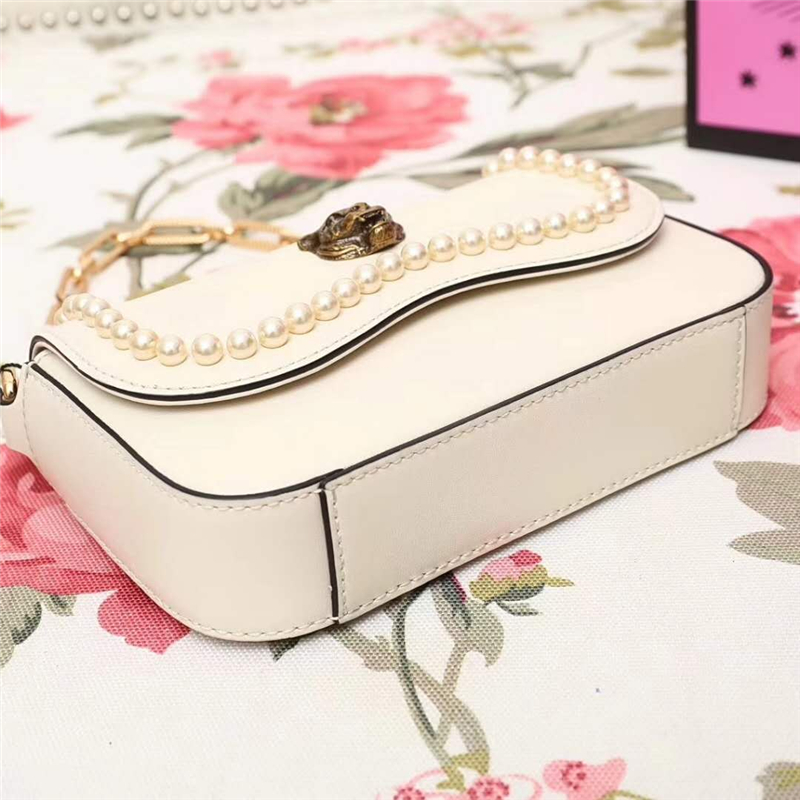 476804 Gucci 秋冬新款 全皮 虎头 珍珠 链条手拎单肩包 白色