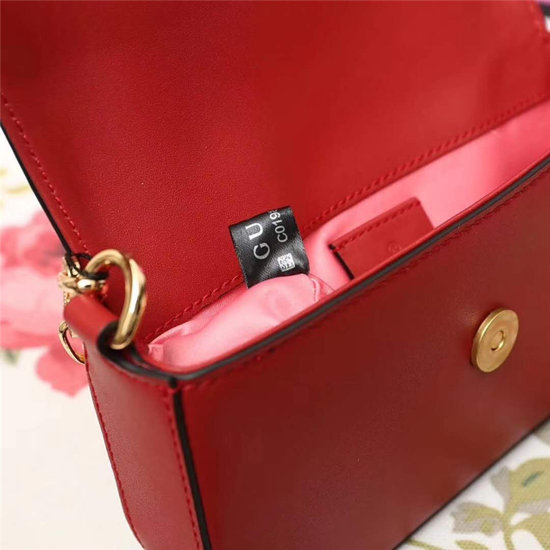 476804 Gucci 秋冬新款 全皮 虎头 珍珠 链条手拎单肩包 红色