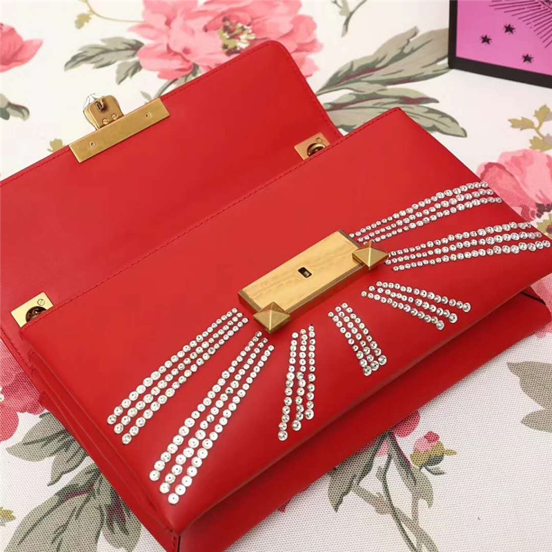 477330 GUCCI 秋冬最新 虎头 lOVED字母印花 链条单肩包 红色
