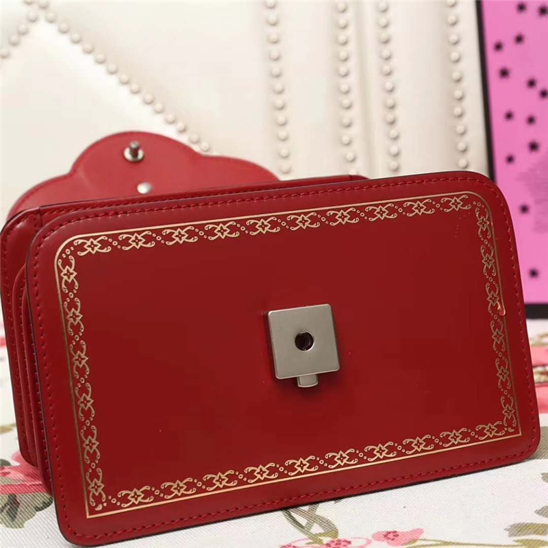 488667 Gucci 翻盖 豹头镶钻 竹节提手 链条手提风琴包 红色