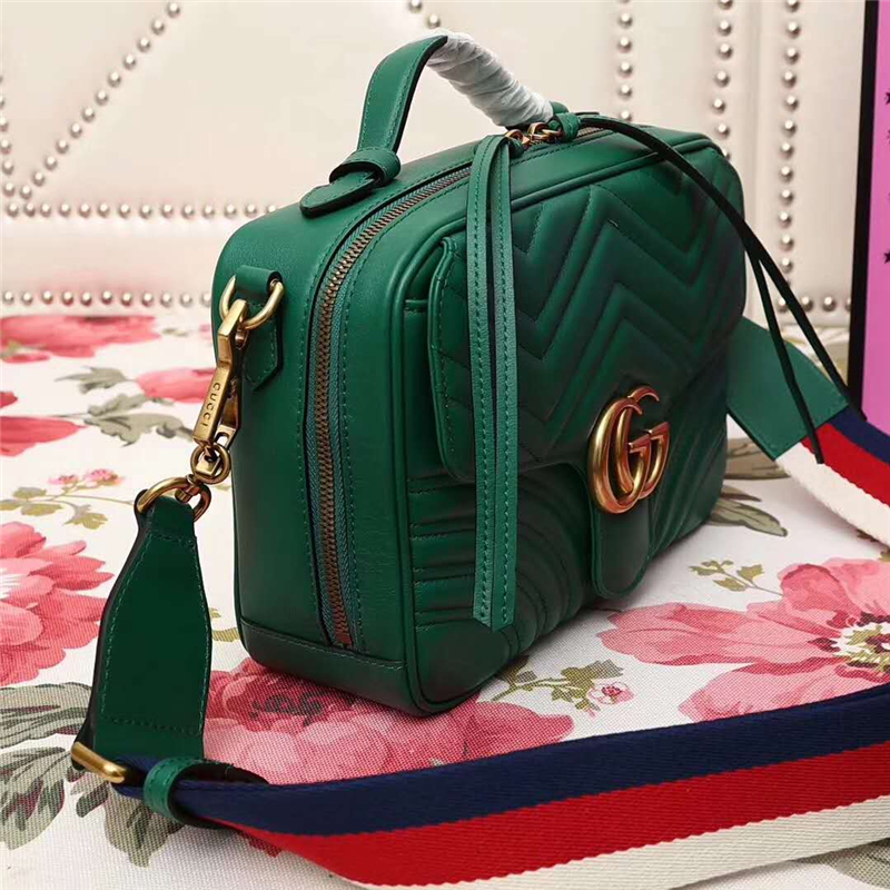 498100 新款 GG Marmont系列 绗缝波浪纹 织带 手提斜跨包 绿色