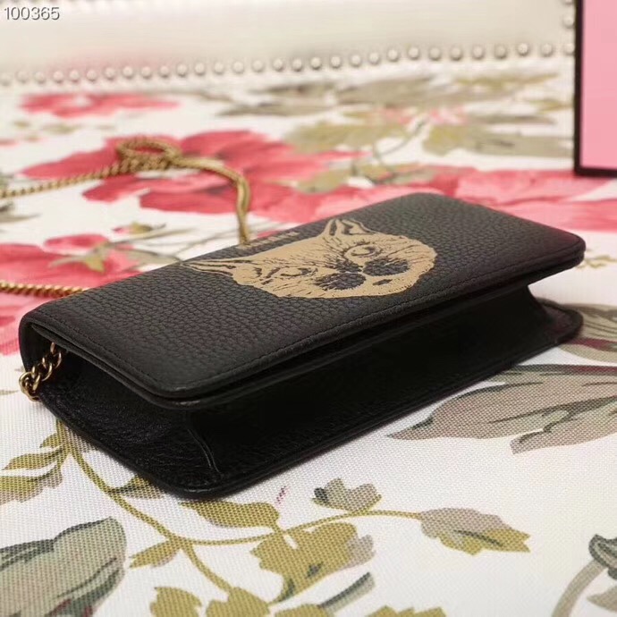 521552 GUCCI肩背包 头层甩纹牛皮 猫头系列 链条肩背包 黑色