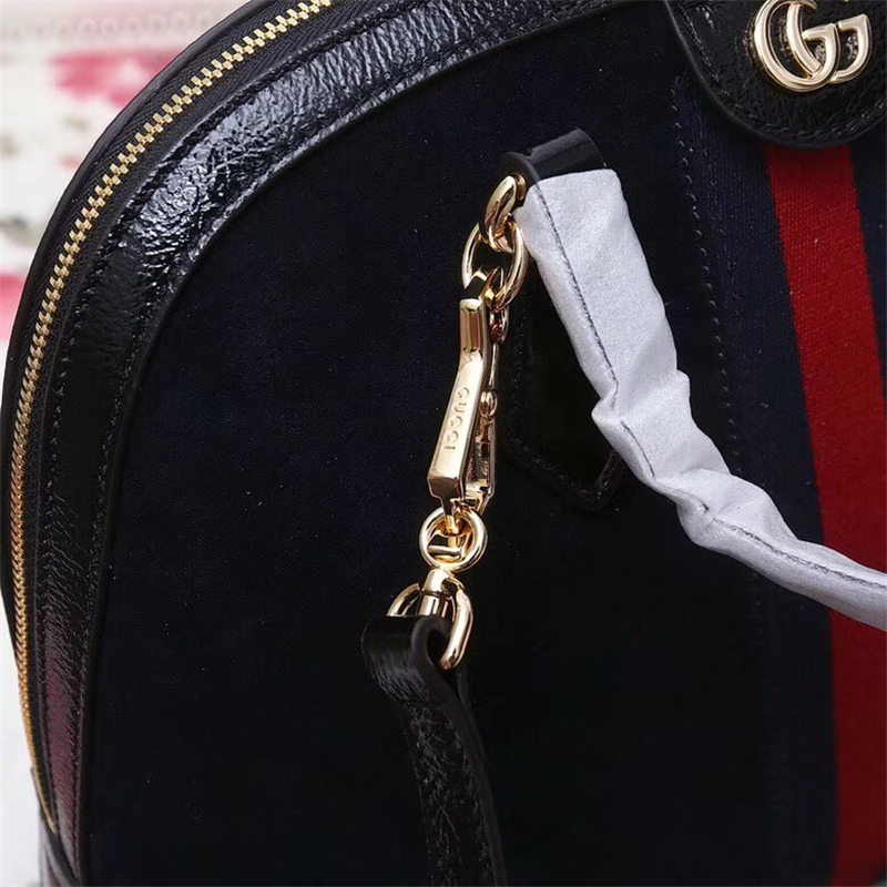 524533 Gucci女袋 Ophidia系列 拼皮绒面 红蓝织带 古驰经典手提包 黑色
