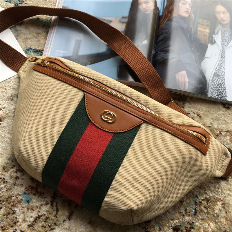 575082 Gucci复古帆布腰包 Gucci胸包 米色复古帆布