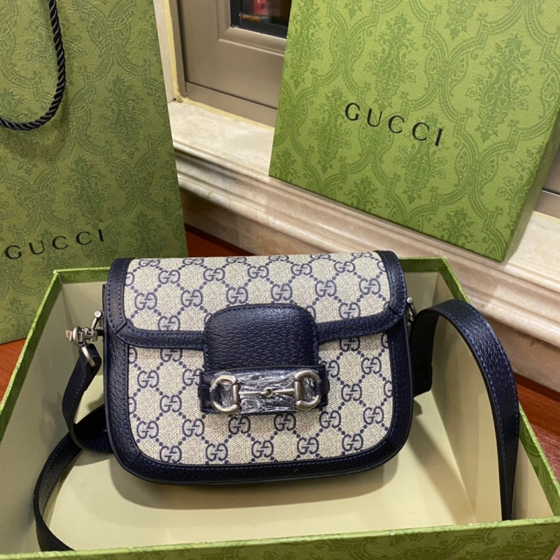 658574 Gucci 马衔扣1955系列GG迷你手袋 Gucci马鞍包 海蓝色