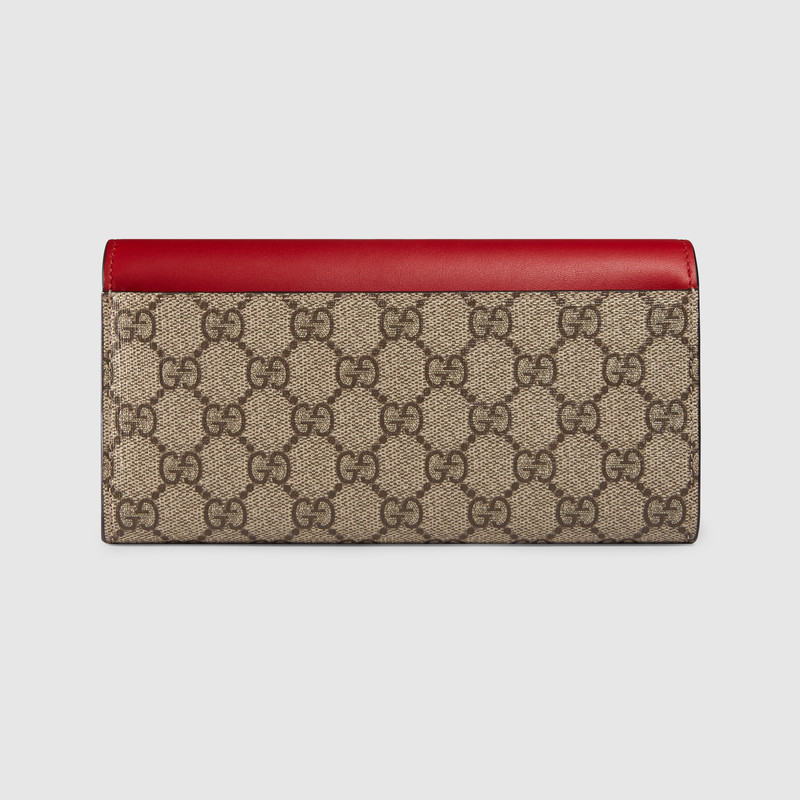 410105 GUCCI GG Supreme高级人造帆布 真皮翻盖 长款皮夹 乌木色配红