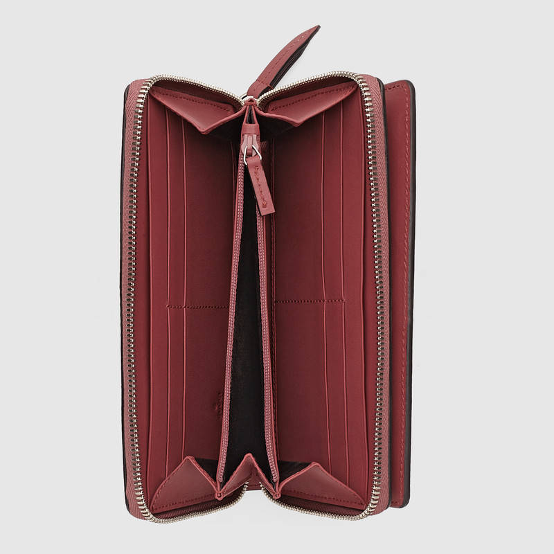 Blooms印花GG Supreme高级人造帆布拉链钱包。GG Bloom印花在2015年秋冬秀场上首次亮相,并且已经成为品牌标志性设计。