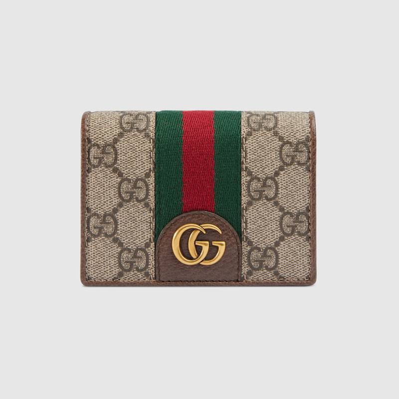557801 GUCCI GG Supreme高级人造帆布 三只小猪图案 卡包 乌木色