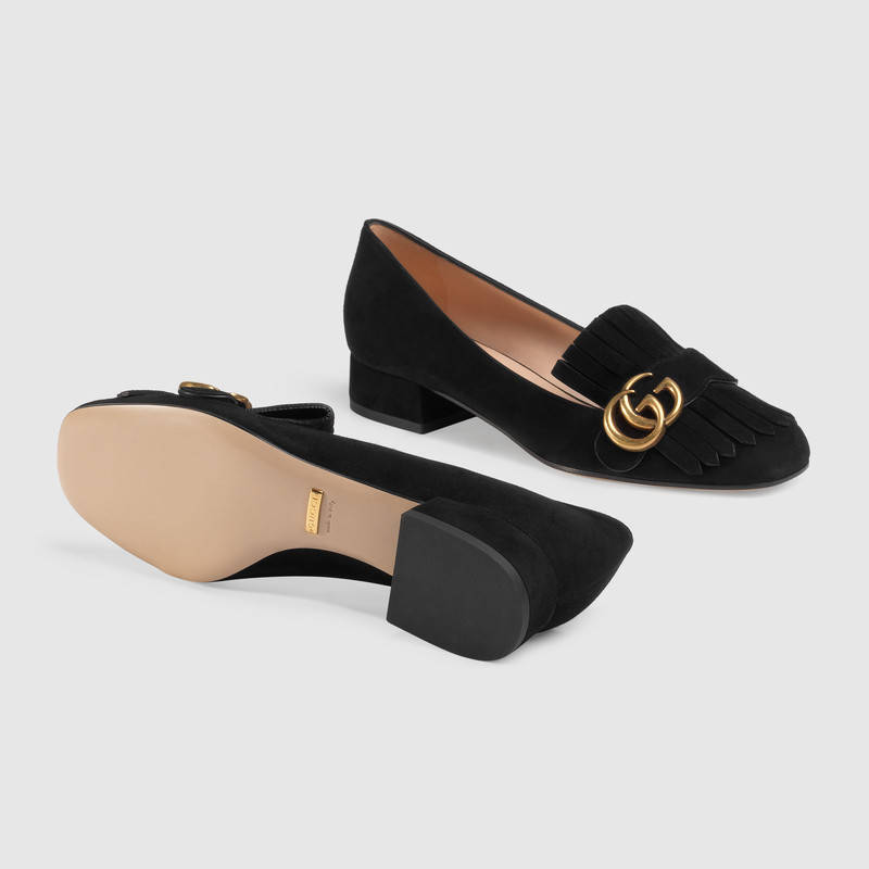 453480 GG Marmont 系列 麂皮 低跟鞋 黑色