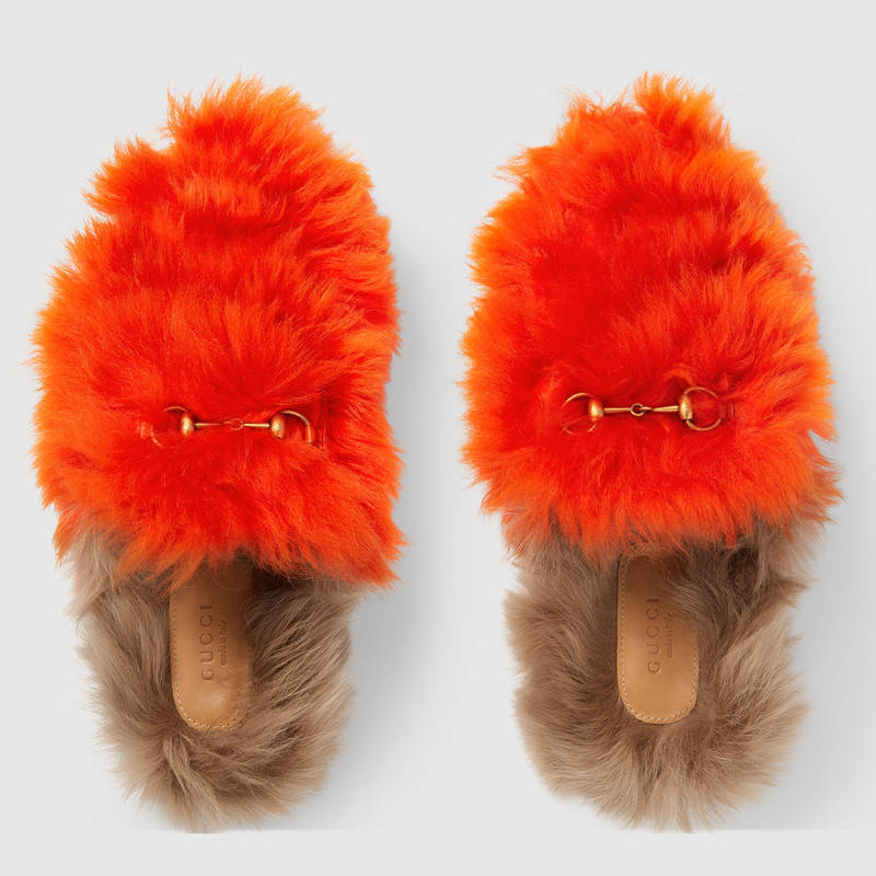 480064 GUCCI Princetown系列 美利奴羊毛 马衔扣 拖鞋 橘色