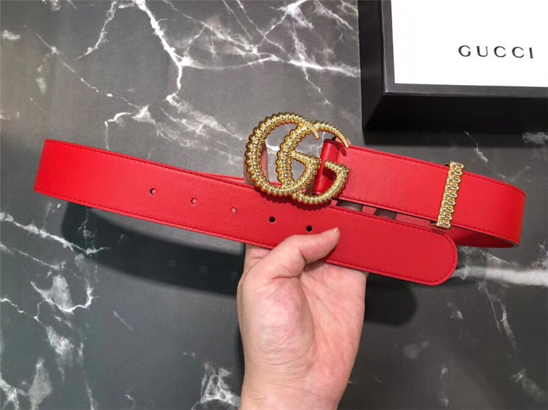 Gucci 2018男女时尚畅销新款作为品牌标志的经典双G造型 在2018早秋系列中加入了饰带设计 拧花效果增加了皮革腰带的立体感 搭配金属扣环 恰如其分 和谐统一 带身双面采用平纹原厂牛皮打造 原单品质 高端用户首选