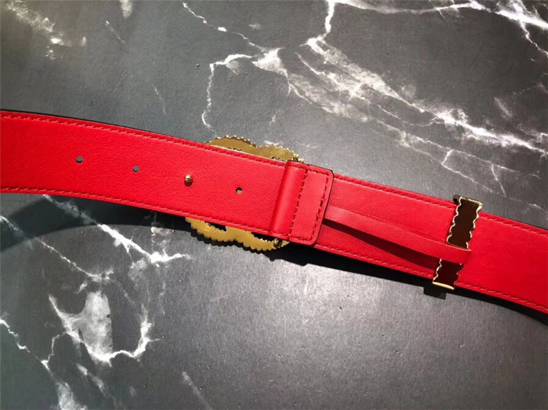 Gucci 2018年新款 平纹原厂牛皮 GG互扣式 双G带扣 男女皮带 红色