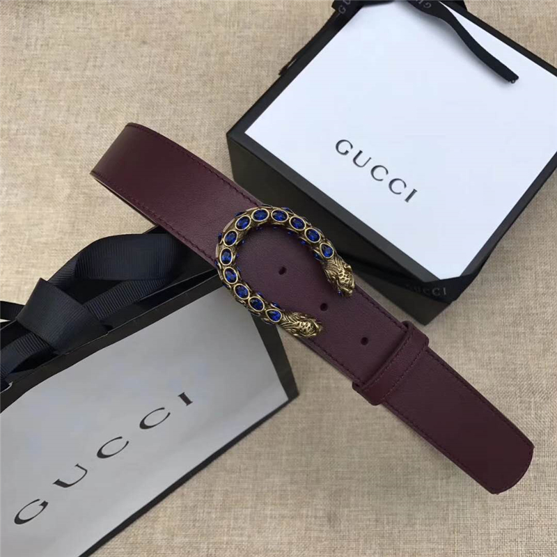 GUCCI 古驰 2017畅销女款 双面进口平纹 头层牛皮 龙头花纹扣 啡带蓝钻金扣