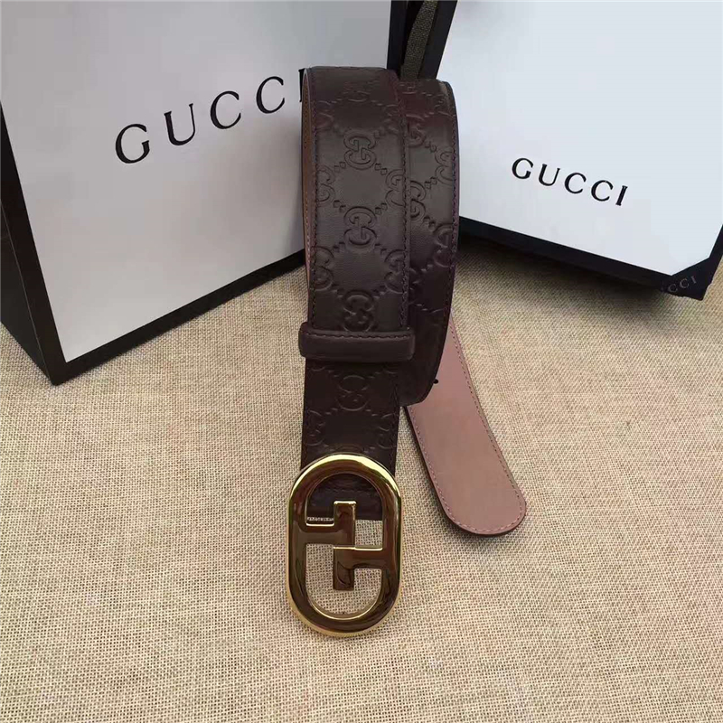 Gucci 金色扣腰带 内衬头层树膏磨砂皮底腰带 Gucci皮带