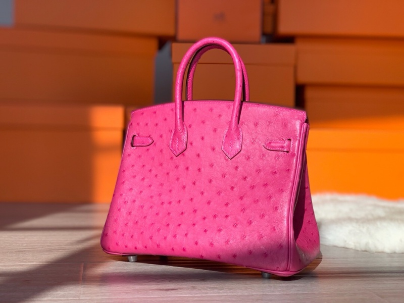 Hermes Birkin 25 爱马仕铂金包 纯手工定制版 鸵鸟皮 玫红色