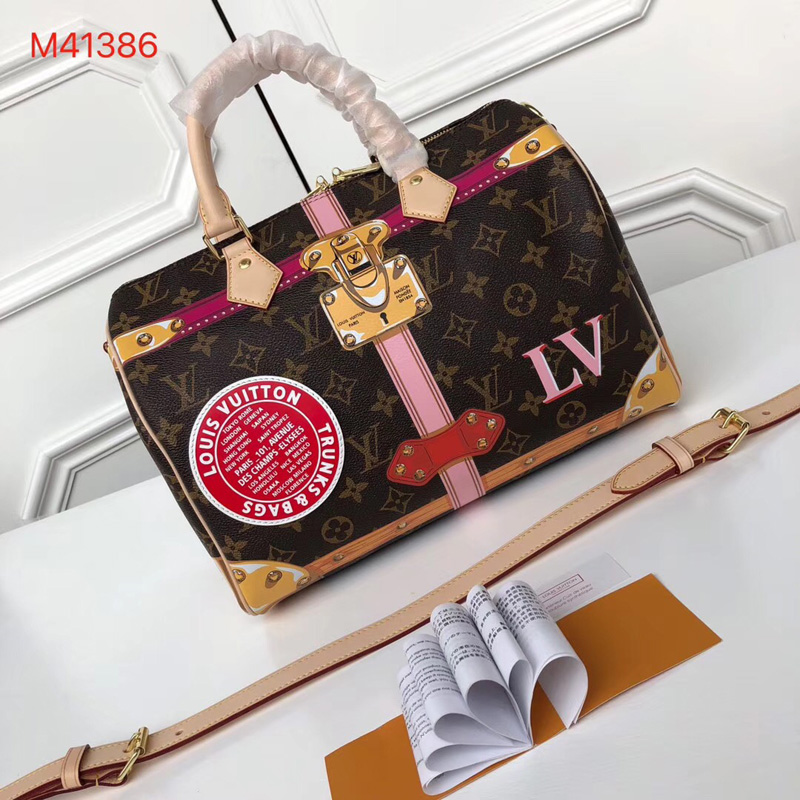M41386 LV Speedy 30 手袋 LV挂锁丝印图案女包 LV老花女包 LV枕头包
