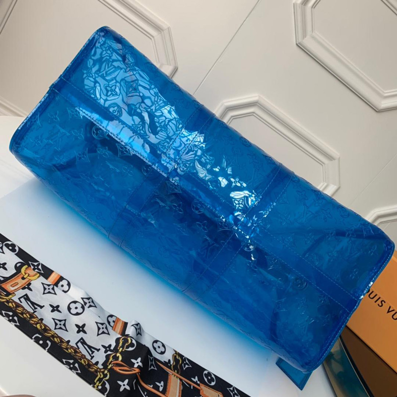 M53272 LV KEEPALL 50 旅行袋(配肩带)透明Monogram印花PVC旅行袋 蓝色