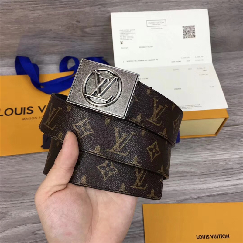 LOUIS VUITTON 男士原单腰带 老鼠货 宽度40毫米 编码M0024 经典进口小牛皮配以帆布製作打造惊艳造型 精品仿古金银色搭扣 饰有路易威登字母图案