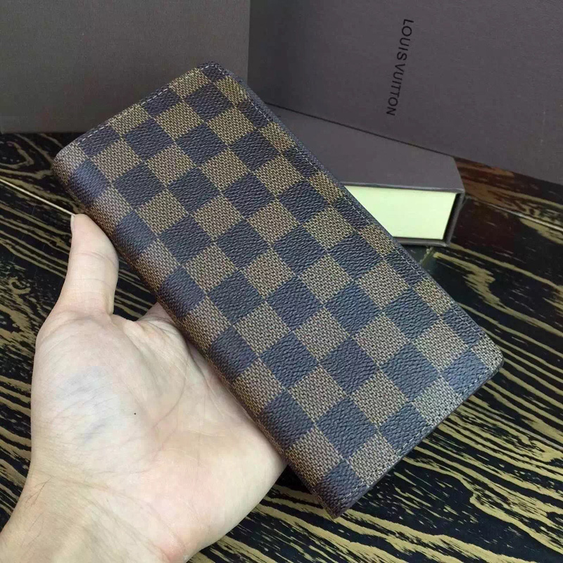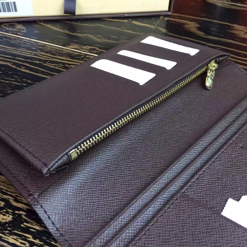N60017 LV 原单经典 Brazza 啡色棋盘格长款竖款两折钱包 LV男士钱夹
