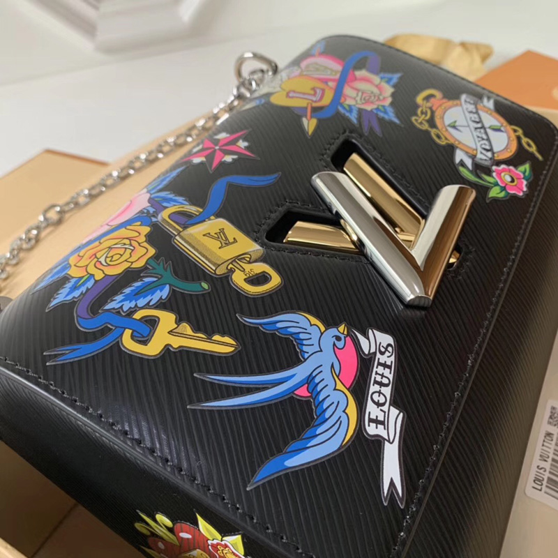 M52897 LV TWIST 中号手袋 彩色刺青装饰 LV女包 LV女士单肩包 黑色
