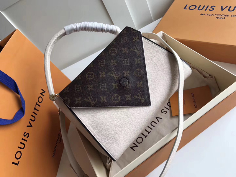 M54438 LV DOUBLE V 手袋 LV女包 翻盖式拼色老花单肩手提包 奶白色