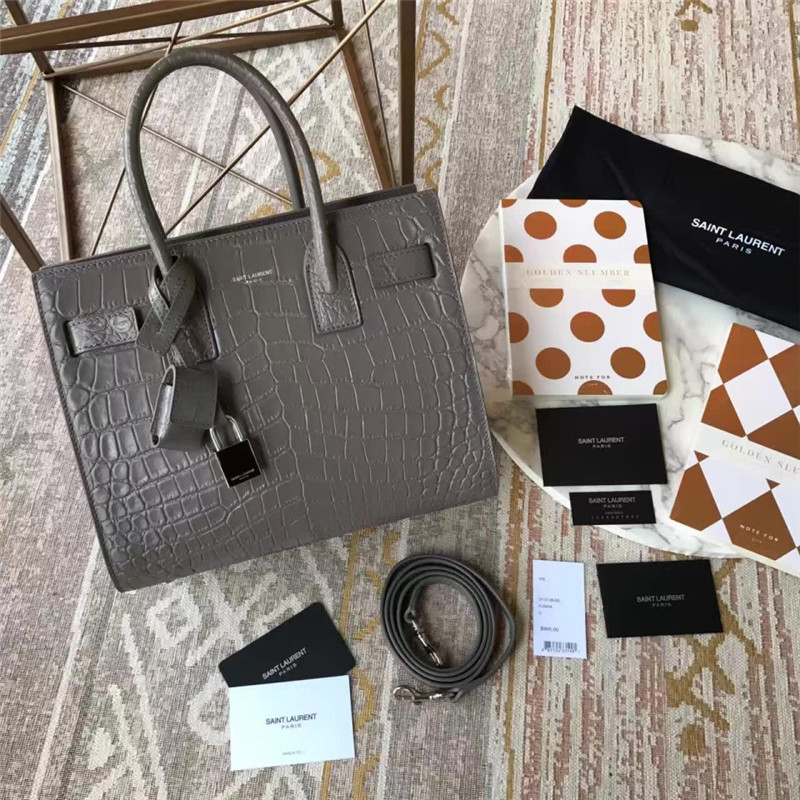 SL0009 YSL女包 SLP经典款Sac de jour鳄鱼纹风琴包 圣罗兰2017年新款手提包 灰色
