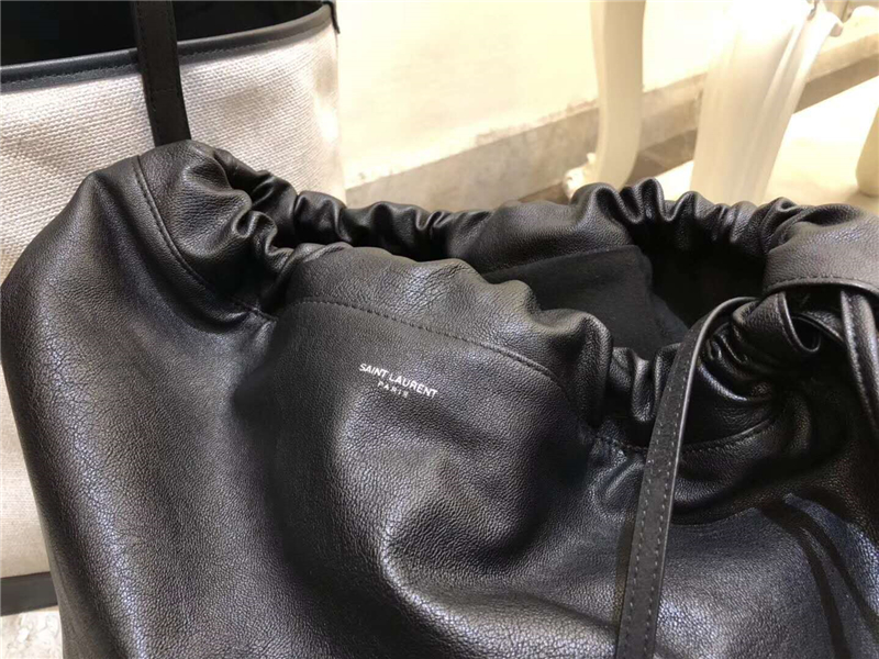 551595 YSL手提包 TEDDY 班达那亚麻帆布 圣罗兰购物手提袋 黑白配