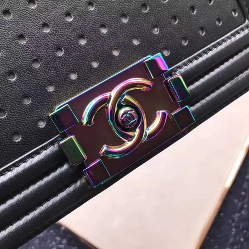 le boy香奈儿发光包样式细节,安装酷炫的五颜六色双C扣,漂亮包包什物拍照
