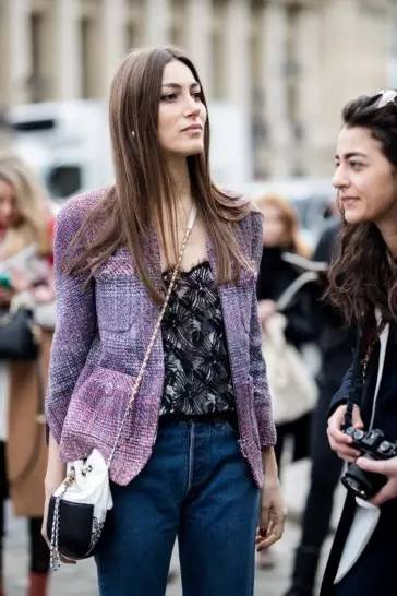 但是看街拍的时候,我觉的这只包的背法应该不止七种,买一只Gabrielle大概会有买了N只包的错觉吧~大多数的时髦人都喜欢V字型的背法,秀场上的模特们也大都是这种背法: