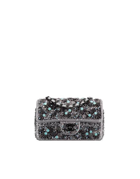 Chanel Embroidered Fabric Classic Flap Mini Bag