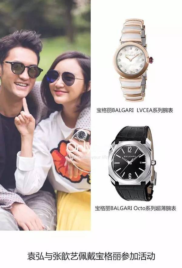 袁弘与张歆艺二人大婚时,佩戴的就是一对宝格丽腕表,深情的新郎选择了宝格丽Octo系列腕表,而美丽的二姐则佩戴了优雅知性的宝格丽LVCEA腕表。同一品牌的一对情侣腕表,自然是完美CP,O姐看来,这的确是个好选择。
