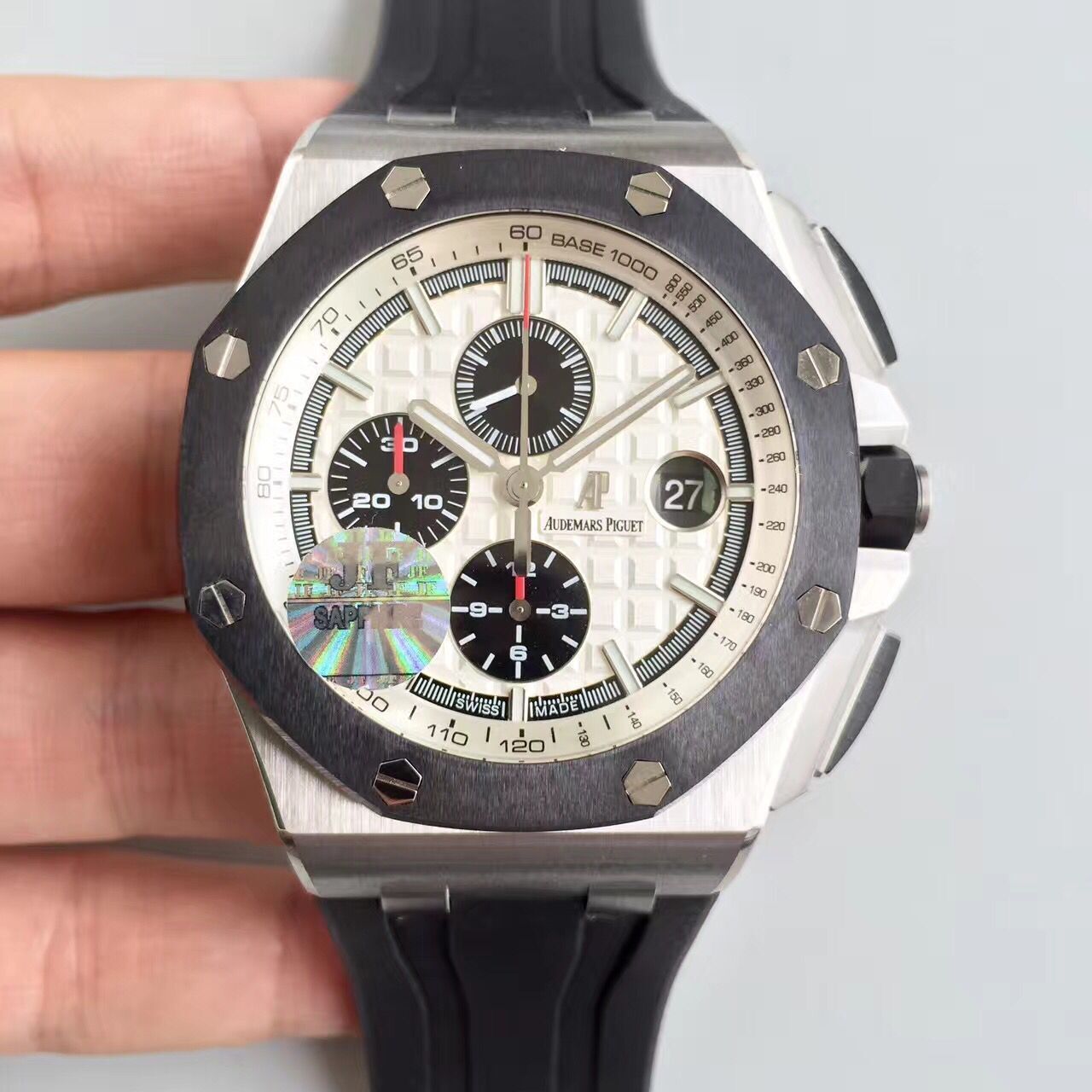 前面我们给各位表友介绍过关于爱彼皇家橡树离岸型系列计时腕表:爱彼舒马赫计时腕表。今天给大家带来——爱彼皇家橡树离岸型系列26400SO.OO.A002CA.01腕表。也就是我们常说的爱彼大熊猫,这个名字也显示出这款腕表的珍贵程度。爱彼大熊猫这款腕表在复刻表中作为JF工厂的爱彼手表成员之一,也是属于高仿表中不可多得的精品。